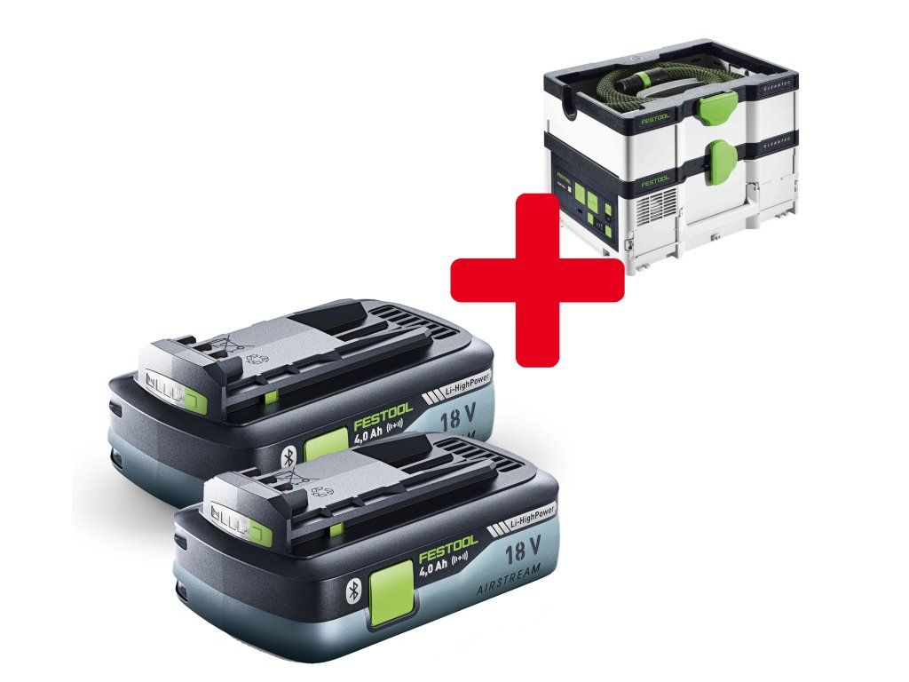 2x Festool Akumulátor HighPower BP 18 Li 4,0 HPC-ASI + Festool Vysavač CTLC SYS I-Basic Cleantec