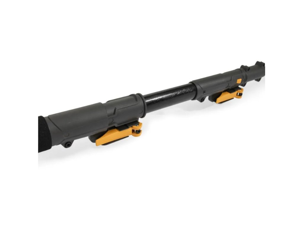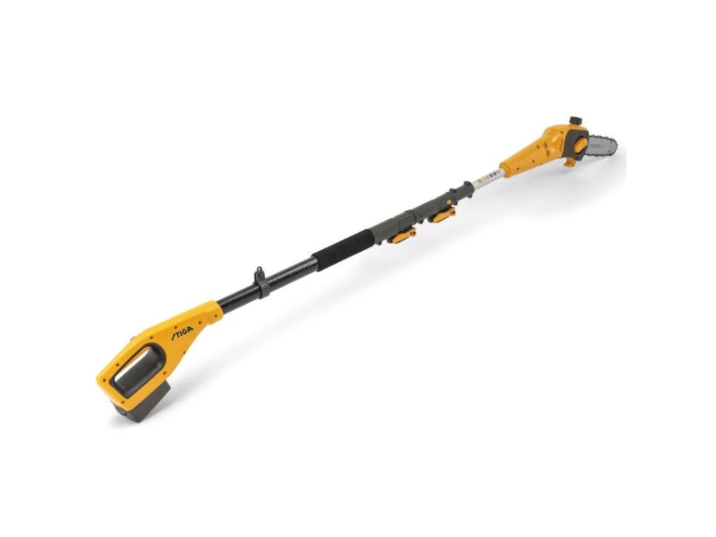 55cm teleskopické prodloužení – uživatel může nástrojem dosáhnout do výšky 2,75 m (nůžky na živý plot) a 2,55 m (prořezávací pila)