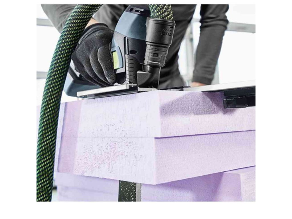 Řezání PUR (tvrdá polyuretanová pěna) a polystyrenových izolačních desek (s řezací soupravou s pilovou lištou s rozšířenými zuby)