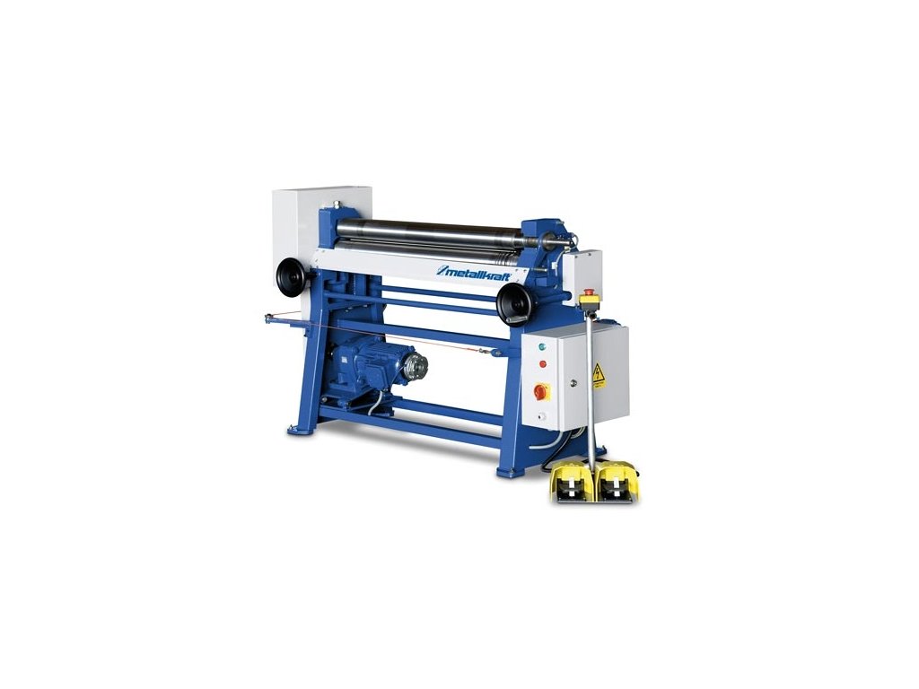 Stabilní výkonná zakružovačka plechu se samostatně nastavitelnými válci a nožním ovládáním pro průmysl a řemeslné dílny.