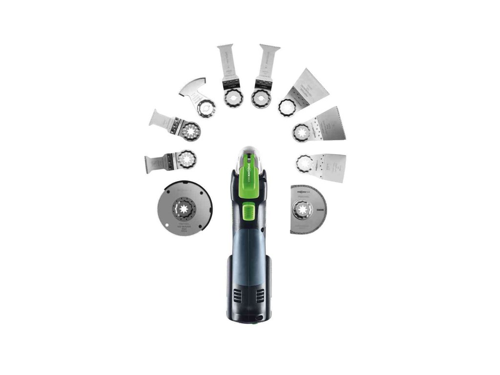 odsávací zařízení OSC-AV, vodicí stojánek OSC-AH, hloubkový doraz OSC-TA, adaptér OSC-A, univerzální pilový nástroj USB 78/32/Bi/OSC, univerzální pilový nástroj USB 50/35/Bi/OSC, pilový nástroj na dřevo HSB 100/Bi/OSC, Systainer SYS3 M 187