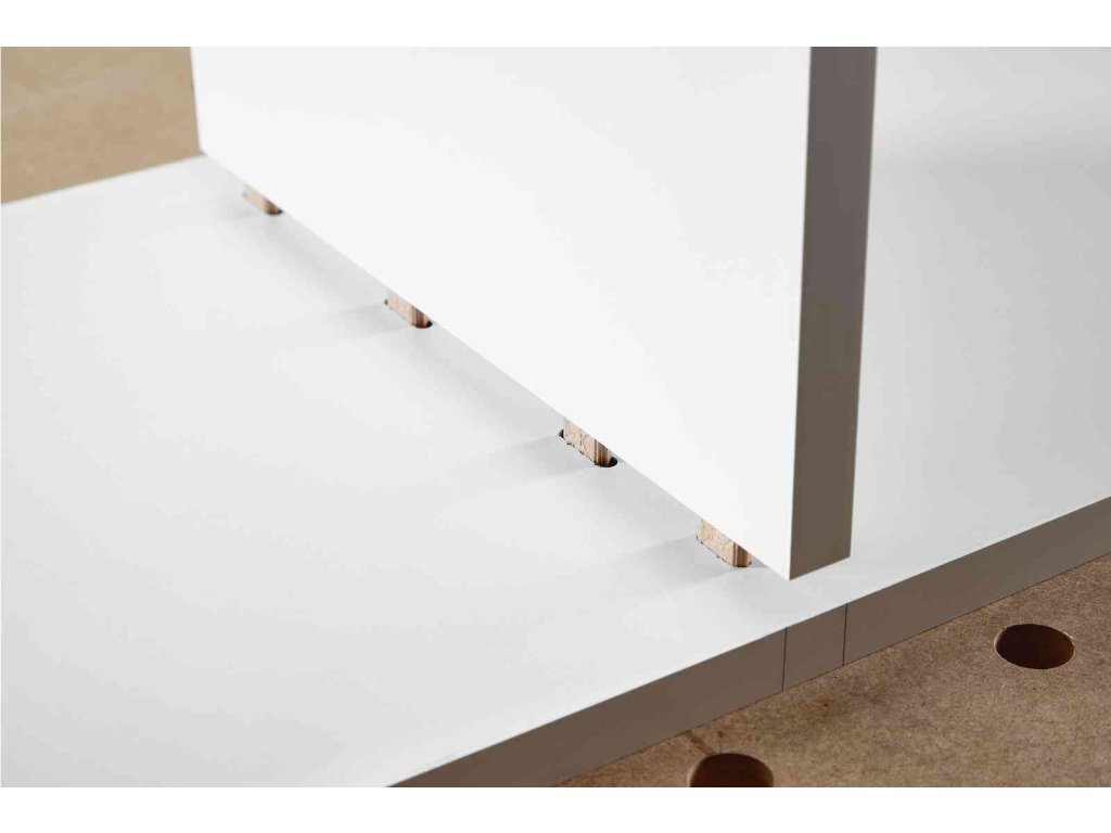 - Vodicí žebra vyčnívající do strany vystředí kolík uprostřed vyfrézovaného otvoru DOMINO a zabezpečují tak perfektní vyrovnání obrobků