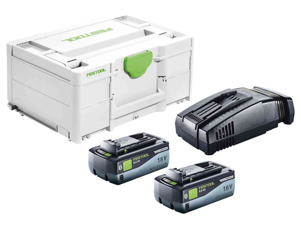 Dobře uložené a extrémně rychle nabité: dva akumulátory 8,0 Ah Li-HighPower. Rychlonabíječka SCA 16 AIRSTREAM. V Systaineru³.