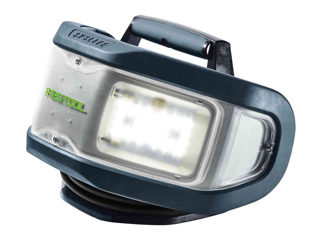 - Flexibilní možnosti použití: postavená na podlaze nebo na ploše, na stativu Festool nebo libovolně zavěšená na háku díky možnosti zavěšení na zadní straně SYSLITE DUO