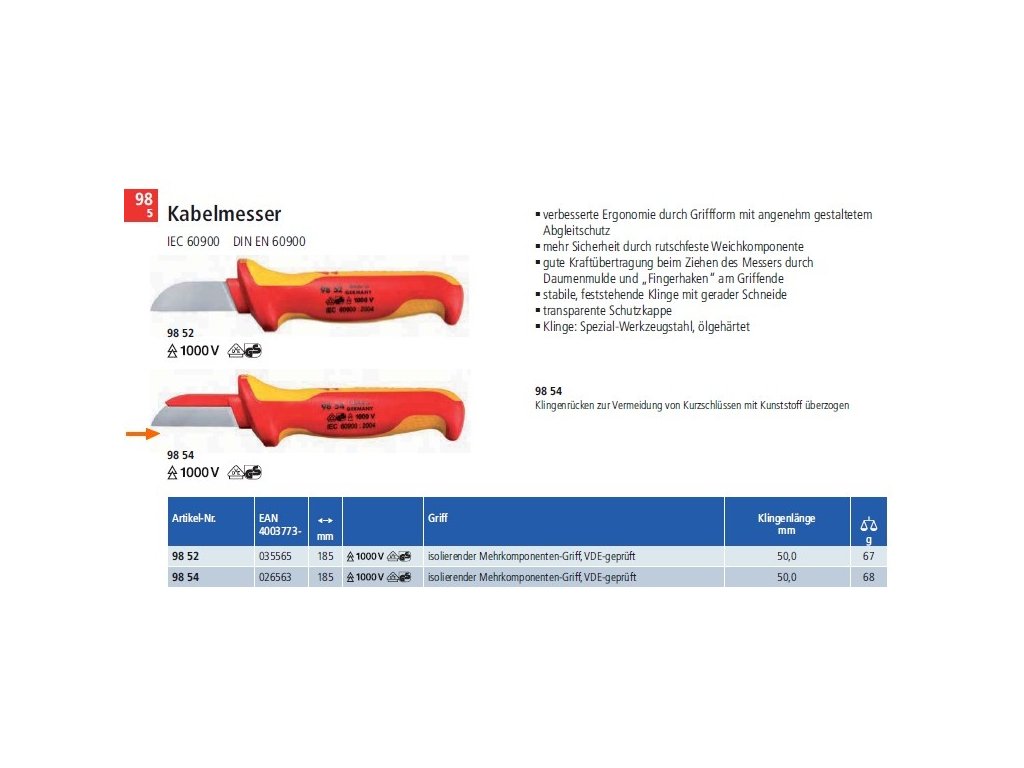 Odizolovací nůž na kabely 185mm KNIPEX 9854 - 1000V
