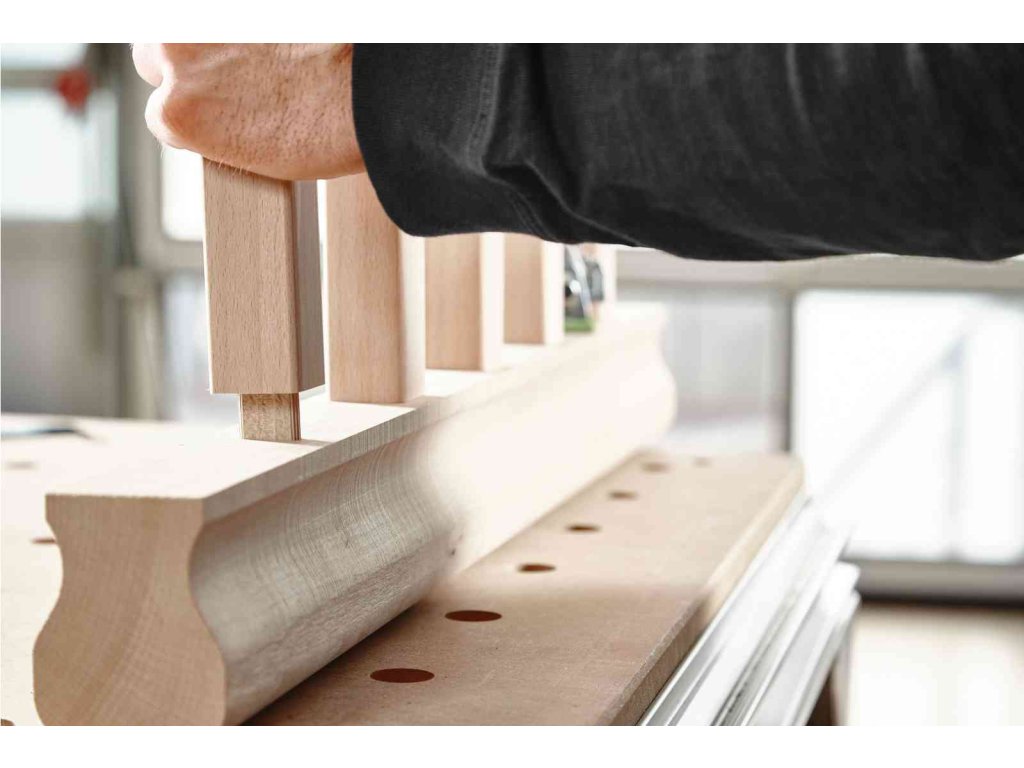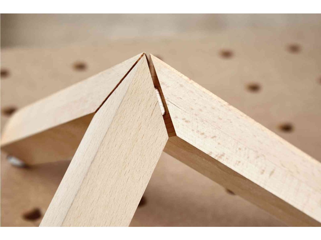 - Vodicí žebra vyčnívající do strany vystředí kolík uprostřed vyfrézovaného otvoru DOMINO a zabezpečují tak perfektní vyrovnání obrobků