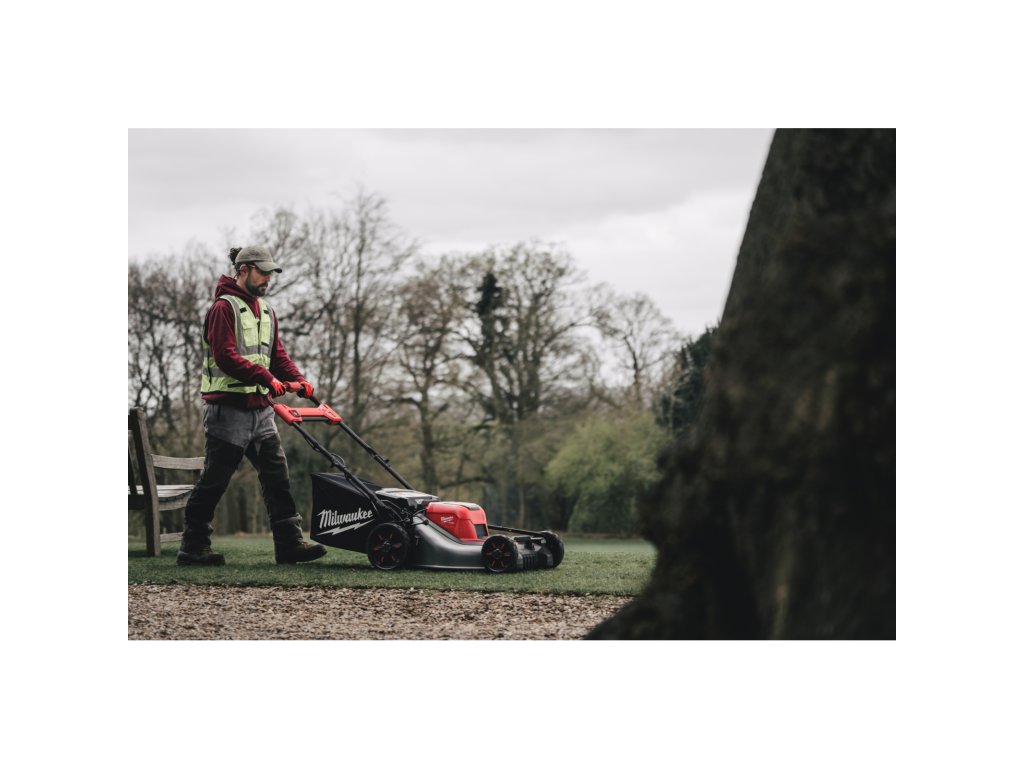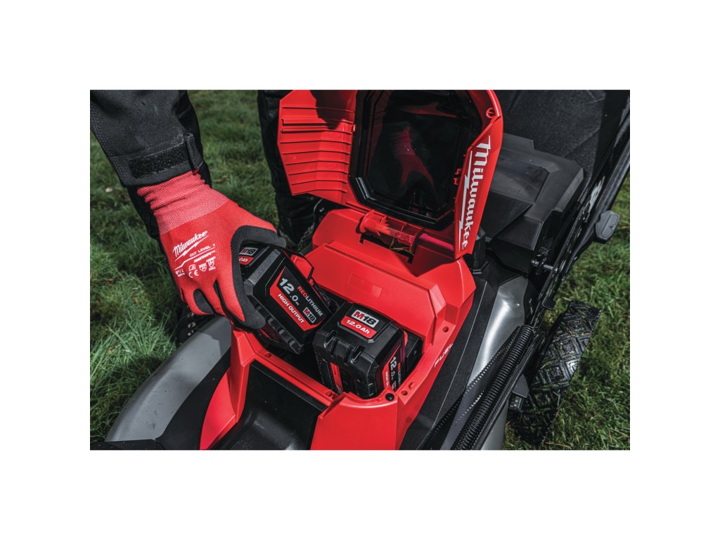 - Na jedno nabití dvou 12,0 Ah akumulátorových modulů M18™ HIGH OUTPUT™ dokáže posekat plochu o rozloze až 2.000 m²