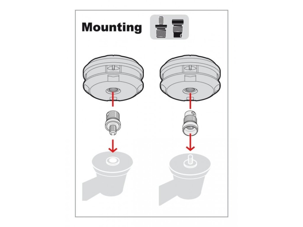 Snadné rychlé připevnění pomocí adaptačních čepů (součástí balení), není nutné hlavu demontovat