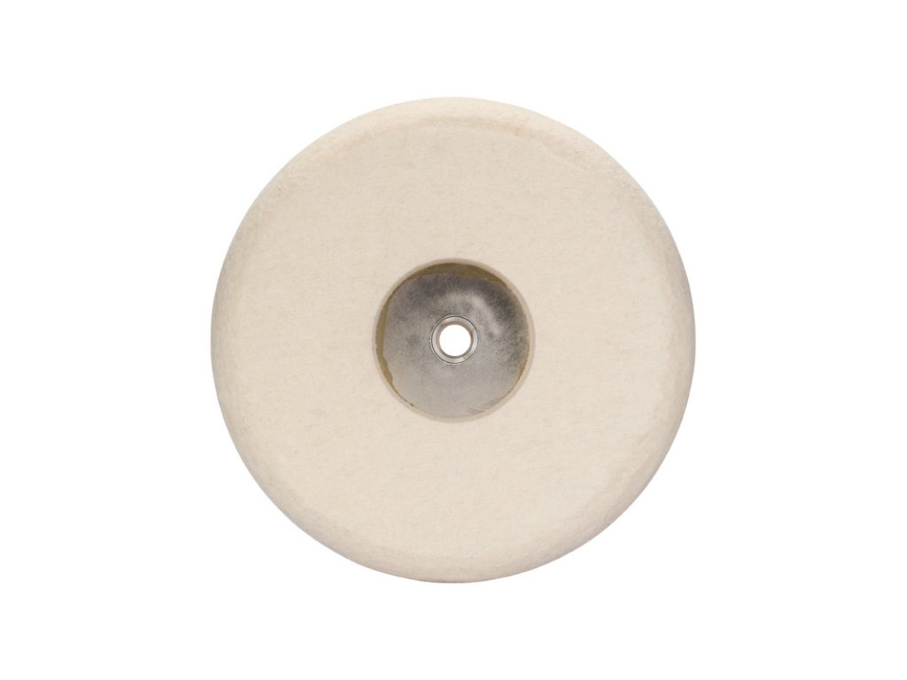 Plstěný lešticí kotouč k leštění různých materiálů, například kamene, plastů nebo neželezných kovů pomocí brusné pasty