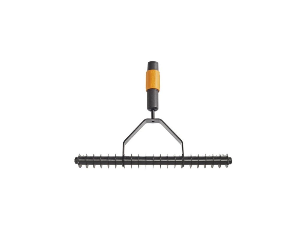 Provzdušňovací hrábě Fiskars jsou určeny k odstranění mechu a uschlé trávy z trávníku.