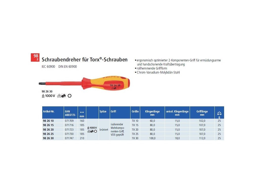 Šroubovák TORX TX20 KNIPEX 982620 - 1000V