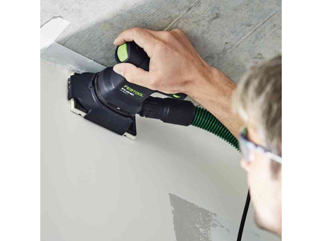 Zdravá práce a méně dodělávek: volitelně jako bezprašná kombinace s mobilním vysavačem nebo vakem na prach Longlife a nasazeným chráničem PROTECTOR pro šetrné broušení podél okenních skel, rámů a výplní