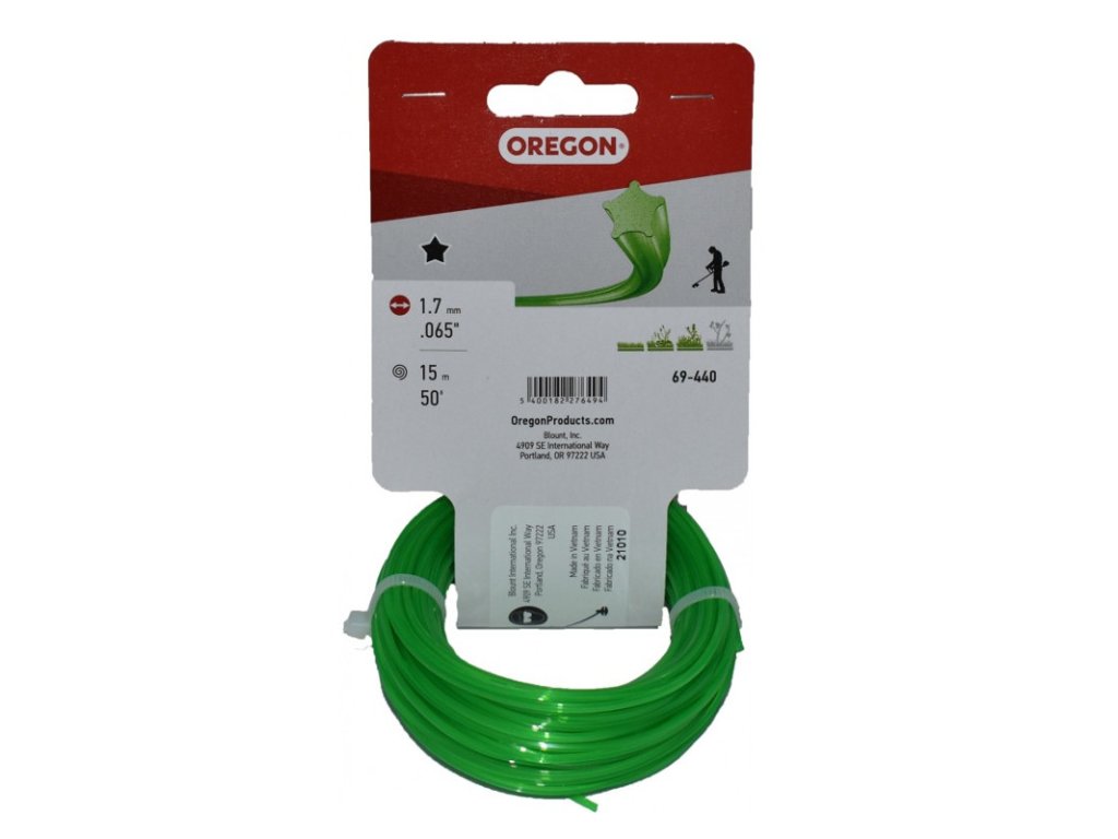 Zelená struna OREGON s profilem hvězda je vhodná především pro pravidelné sečení zahrad, parků a pozemků s nízkou i vyšší trávou.